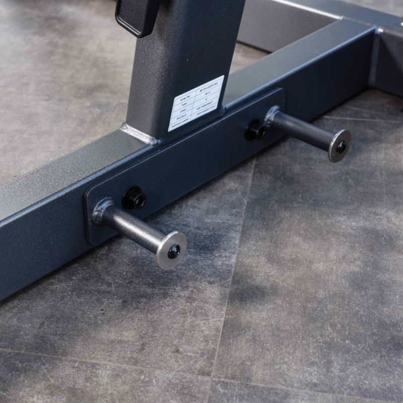 - Опорные элементы тренажёра оборудованы пластиковыми подпятниками, предотвращающими повреждение напольного покрытия и обеспечивающими устойчивость оборудования.