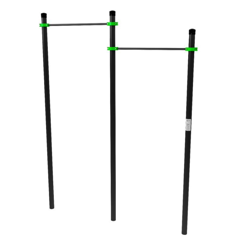 Уличные перекладины разноуровневые (два уровня) для подтягивания из виса на высокой перекладине ZAVODSPORTA* предназначена для установки на уличных спортивных площадках с учетом интенсивной эксплуатации в разных климатических условиях.