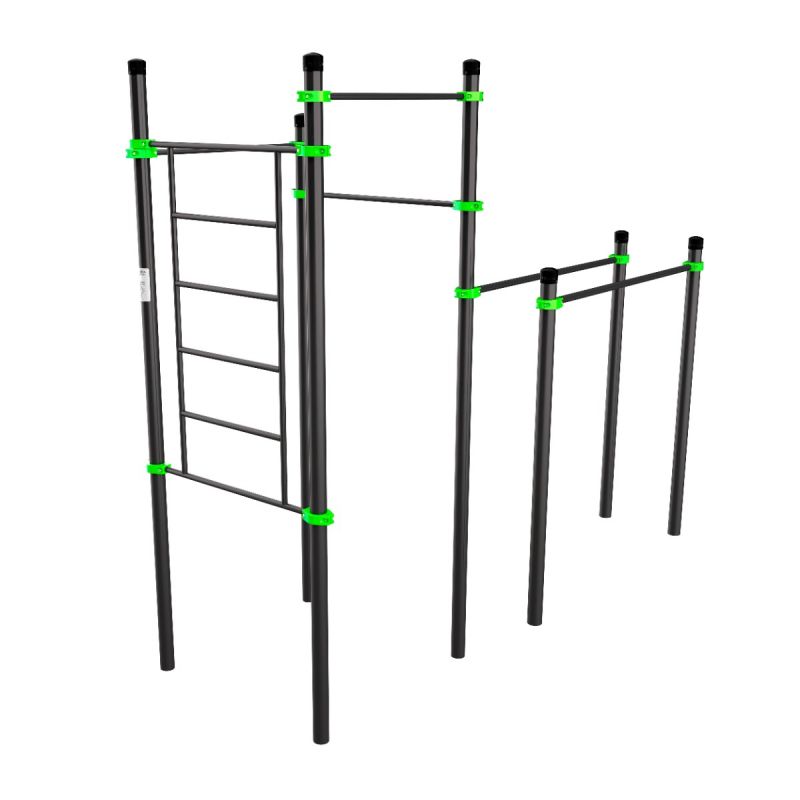 Универсальный комплекс для полноценной тренировки всего тела. Шведская стенка и разноуровневые турники развивают гибкость и силу, выносливость, а брусья дают возможность прокачать трицепсы, грудные мышцы и мышцы корпуса. Комплекс компактен, прост в монтаже и подойдёт для пользователей любого уровня подготовки.