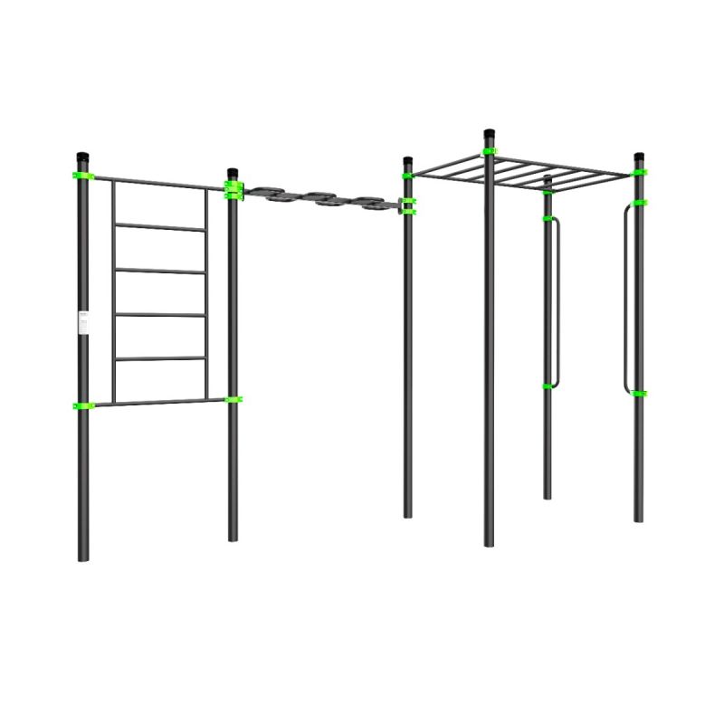 Универсальный комплекс, сочетающий четыре типа оборудования для всестороннего функционального тренинга. Классический рукоход развивает силу хвата, плечевого пояса и корпуса, змеевик – улучшает координацию и ловкость за счёт нестандартной траектории движения. Шведскую стенку можно использовать для подтягиваний, отжиманий с опорой, упражнений на пресс и растяжку. Дополнительно в комплекс включены вертикальные перекладины, которые открывают возможности для лазания, тренировок на баланс и удержание корпуса. Такой тренажёр подойдёт для всех возрастов и уровней подготовки, включая программы подготовки к выполнению нормативов ГТО.