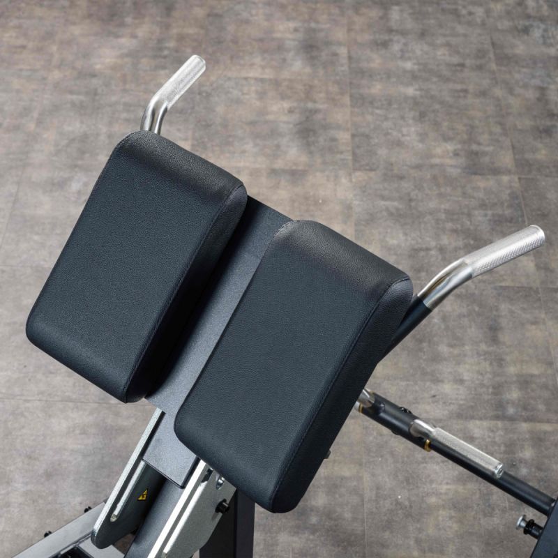 Профессиональный тренажёр Гиперэкстензия нагружаемая для развития ягодичных мышц, задней поверхности бедра и поясничного отдела. Механика с подвижным рычагом и регулируемой нагрузкой делает тренировку безопасной, контролируемой и эффективной даже при работе с большим весом. Возможность подключения эспандеров позволяет плавно увеличивать сопротивление и адаптировать нагрузку под уровень подготовки. A627 – новое поколение гиперэкстензий, сочетающее функциональность, комфорт и продуманную биомеханику для профессиональных тренировок.