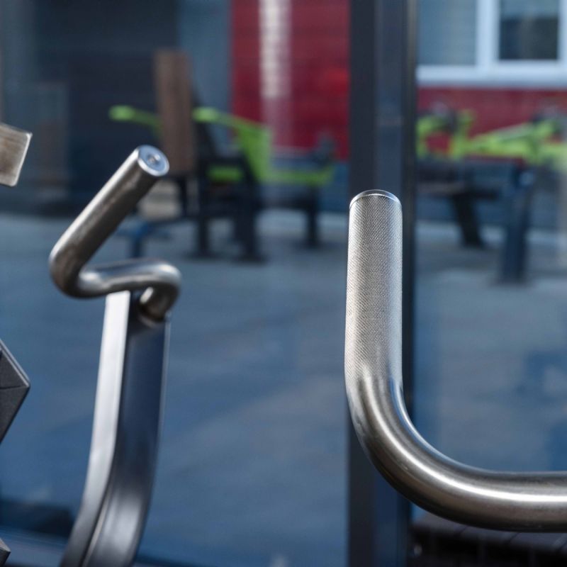 - Рабочие рычаги выполнены из изогнутого металлического профиля 50×50 мм, что обеспечивает удобное положение кистей и естественную биомеханику тяги.
