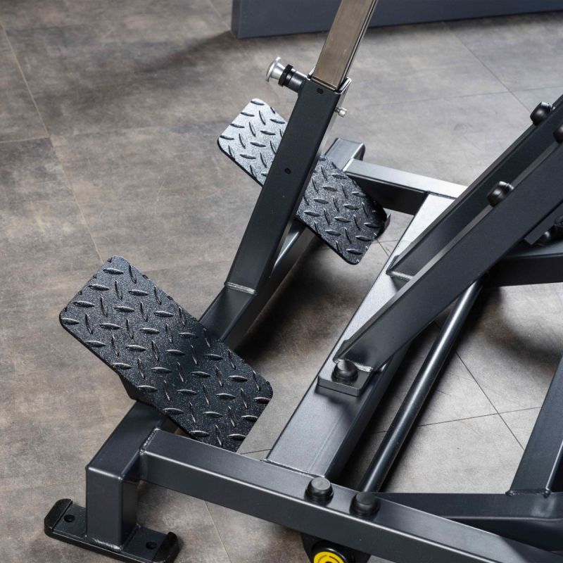 - Прямоугольные подпятники из износостойкой резины имеют металлическое основание и отверстия для фиксации к полу. Такая конструкция гарантирует устойчивость тренажёра, равномерное распределение нагрузки и защиту напольного покрытия от повреждений.