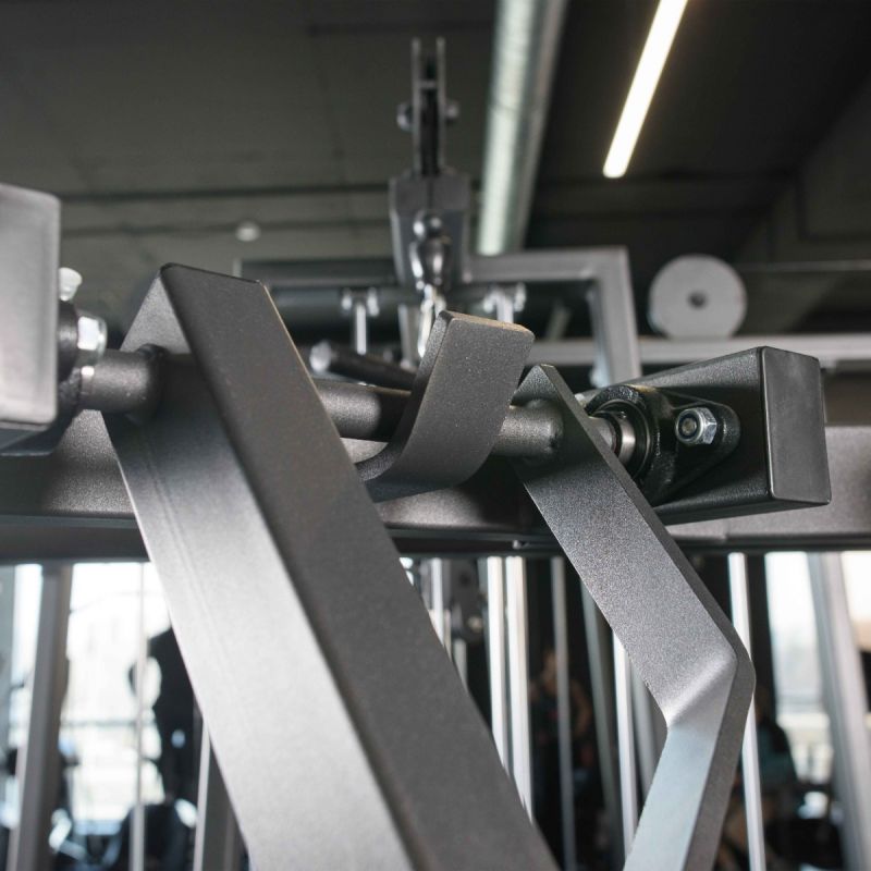 Жим от груди широким хватом максимально нагружает большие грудные мышцы и практически исключает из работы трицепсы. Рукоятки расположены шире, а траектория движения рукояток более сходящаяся, в сравнении с тренажером Независимый жим на низ груди, поэтому занятия на тренажере подойдут опытным спортсменам с широкой грудью.