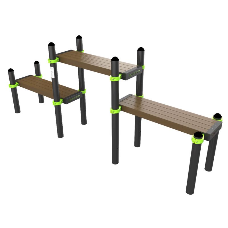 Функциональный элемент для тренировок на пресс и отжиманий. Три скамьи разной высоты дают возможность варьировать интенсивность нагрузки, использовать их как по отдельности, так и в связке – например, для круговой тренировки. Подходит для тренирующихся любого уровня подготовки.
